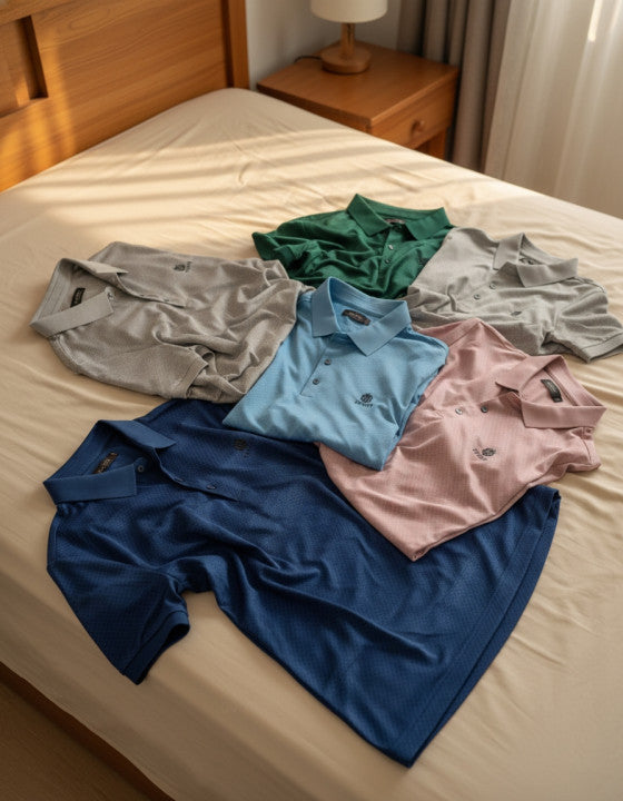 95% poliéster, 5% elastano — essa polo é feita pra quem carrega respeito nas costas. Aguenta calor, suor, rotina pesada, não amassa e não pede arrego. Presença marcante em qualquer lugar, te deixa pronto pra tudo, do churrasco ao trabalho. Peça rara, estoque sumindo: aqui não é pra qualquer um.